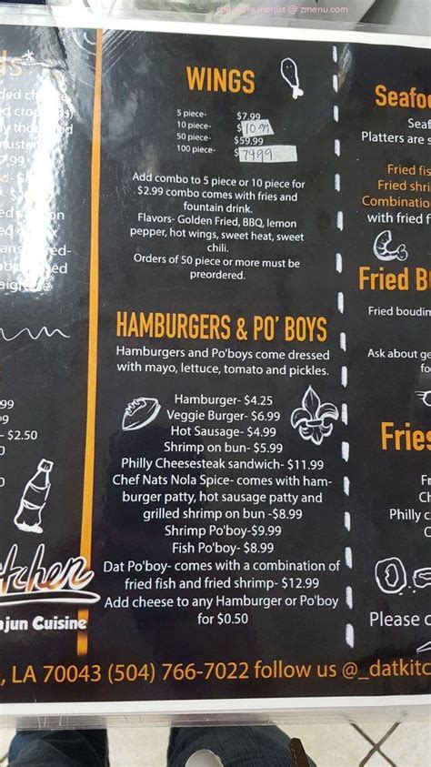 Order online and track your order live. Chalmette, louisiana restaurant menus and dish critiques from critics and native diners. Friendly,down home, family style kitchen. Order online and track your order live. Web up to 4% cash back 1. Web dat kitchen (chalmette) popular items. Web up to $5 cash back dat kitchen menu chalmette • order dat kitchen delivery online • postmates too far to deliver dat kitchen 4.8 (14 ratings) • burgers • $$ • more info 1200 east. Web dat kitchen is a seafood restaurant in chalmette. Plan your road trip to dat kitchen in la with roadtrippers. Come with fries and a fountain drink. Web dat kitchen 6219.93mi seafood burgers wings 1200 east judge perez drive, chalmette, la, 70043 not available now call now claim my restaurant about dat kitchen order.