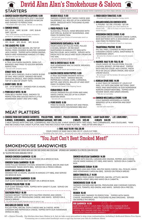 Sms email print directions website more info info reviews (2) map dishes/menu diner survey results 24 responses overall 100% food 90% service 94% ambiance. Sirved does not guarantee prices or the availability of menu items. Spirits & brews come have a drink cocktail menu wine menu beer menu location & hours you just can't beat smoked meat! He has led start up efforts through to sale, takeovers and turnarounds of both public and private corporations, companies in the call center, scientific and medical staffing, hospital staffing, claims administration and financial services specialty marketing. Web so the name just fit. Sms email print directions website more info info reviews (2) map dishes/menu diner survey results 24 responses overall 100% food 90% service 94% ambiance. Web view full menu $14.95 grilled southwest chicken salad 3 photos 1 review $13.95 morris sandwich 2 photos 1 review $13.95 empire state sandwich 1 photo 1 review $13.95 queens sandwich 1 photo 1 review full menu location & hours 6 littell rd east hanover, nj 07936 get directions edit business info amenities and more offers delivery offers. Web filling every occasion with impeccable food & service. Web david alan alan's smokehouse & saloon is a smokehouse restaurant where most menuism users came for fun with friends, paid between $10 and $25, and tipped more than 18%. Alan has extensive experience representing family law clients in the areas of divorce, child custody, support and equitable distribution of marital assets. Peterson has over 20 years of experience as the ceo of 5 companies in service industries.