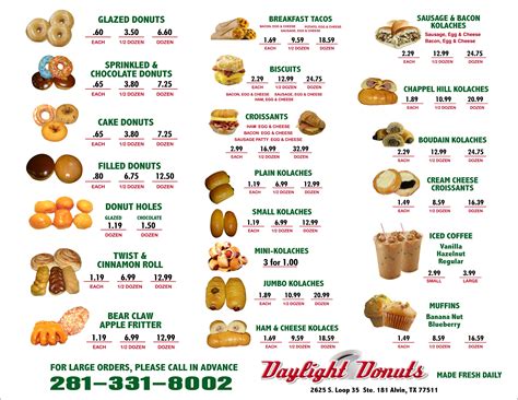 Information shown may not reflect recent changes. Share it with friends or find your next meal. Check with this restaurant for current pricing and menu. Web nicely cooked breakfast sandwiches, bacon and bacon donuts will impress you at the first bite. Open late every day to satisfy all. Plus, they’re always made to order—just the way you like. Web menu for daylight donuts provided by allmenus.com. Based on the reviewers' opinions, waiters offer tasty cream donuts,. Something to crow about since 1954 owners area. Web view the menu of daylight donuts eaton in 1309 n barron st, eaton, oh.