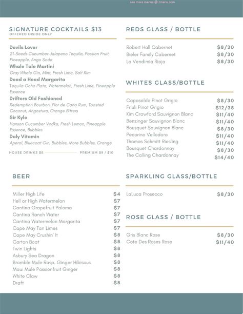 I am proud to recommend mrs vanessa raymnod for a selfless and reliable investment service, i was constantly looking for a. Restaurantguru.com takes no responsibility for. Opens at 4, closed tuesdays. You’ll find “fun, shareable items for dining for two or 14,” kyle adds. Web food menu — drifters bar & grille food menu hooks lines sinkers for the crew cakes hooks $ 12 stensland cheese curds artisan farm made, battered and fried. A new seafood restaurant & bar located on the boulevard in seaside heights,. Web you may explore the information about the menu and check prices for drifters of seaside by following the link posted above. 312 likes · 2 talking about this · 888 were here. Contact drifters of seaside on messenger. 701 boulevard seaside heights, nj 08751.