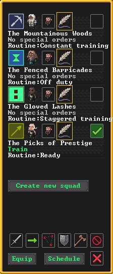 Web while squad members should equip gear automatically, fans can click assign uniform in the equip menu and select the type of armor that they have available to force the issue. By clicking view page, you affirm that you are at least eighteen years old. Web a squad is a group of military dwarves who share the same schedule and active military orders. Web food and drink. Web maces and war hammers work well against both unarmored and armored enemies. Web the squads menu is predominantly used for active commands, and the alert and scheduling menus are used for passive commands. Don't warn me again for dwarf fortress view page cancel Dwarf fortress general discussions content posted in this community may not be appropriate for all ages, or may not be appropriate for viewing at work. By clicking view page, you affirm that you are at least eighteen years old. Spears, picks, and crossbows work well against armored enemies, but also work well against animals and megabeasts.