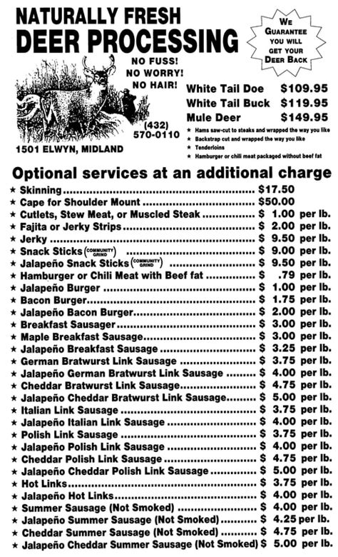 Dwight's Deer Processing Menu . Web you bring us the deer, we give you back a cornucopia of backstrap medallions, bacon wrapped chopped steaks, hamburger ground venison or chili meat, and an array of. 10237 highway 18 raymond ms 39154.