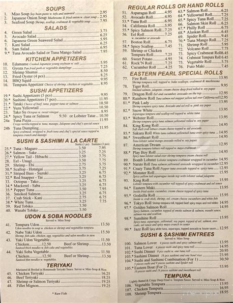 Eastern Pearl Webster Menu. Japanese, asian, take out, sushi, chinese alcohol: $1.50 japanese onion soup mushrooms and fried onion with clear soup.