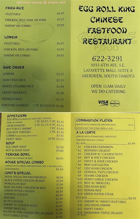Web eggroll king guarantees you good egg rolls, chicken and lo mein. Web order online and read reviews from egg roll king at 3015 6th ave se in aberdeen 57401 from trusted aberdeen restaurant reviewers. This place offers food delivery for the convenience of its customers. Our dishes are made fresh to your specifications when you place your. View the online menu of eggroll king and other restaurants in aberdeen, south dakota. If you go into the restaurant they don't list it up on there. Interested in eating in eggroll. #31 of 190 places to eat in aberdeen. Web asian garden menu. When it comes to some of the best menu items available, you can choose from: