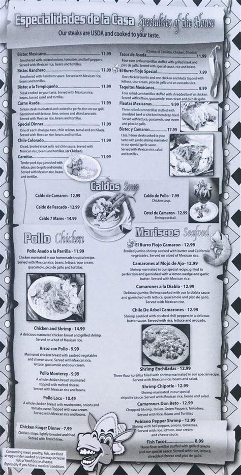 Consuming meat, poultry, fish, seafood, or eggs undercooked or raw. $8.99 chimichangas served with mexican rice and beans. Seasoned with el burro flojo dip. Served with lettuce, tomato, cheese, onions, green peppers, and sour cream. Caldo de pescado $17.99 soup. Especially if you have a medical condition. We fill a flour tortilla with your choice from the list below. Web el burro flojo dip chicken or beef with pico de gallo and great cheese sauce. $ • mexican, sports bar hours: Consuming meat, poultry, fish, seafood, or eggs undercooked or raw. Served with lettuce, tomato, cheese, onions, green peppers, and sour cream.