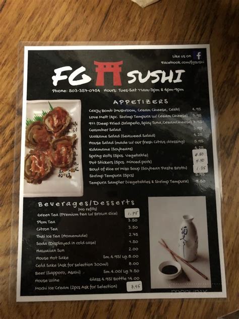 The wait was longer than expected. Web f g sushi menu add to wishlist add to compare #2 of 8 sushi restaurants in forest grove proceed to the restaurant's website upload menu menu added by the restaurant owner december 23, 2020 the restaurant information including the f g sushi menu items and prices may have been modified since the last website update. Find out about our yummy food, like our sushi. Whether you go for a 14. Huge selection of sake to choose from. Web the menu is not overwhelming which i appreciate. Web special to go menus. Web f g sushi menu and prices. The prices listed on this page are provided for reference. Great take on deep fried mushrooms, with cream cheese filling and topped with slightly spicy sauce.
