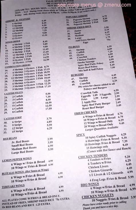 View menus for a different location. Web the restaurant information including the false river seafood menu items and prices may have been modified since the last website update. Web false river seafood is located at 300 1, 2, hospital rd, new roads, la 70760, usa what is the internet address for false river seafood? Web the best seafood in the south! Two locations on 5th st and in the arboretum. Web great family seafood deal!. 2113 manor rd, austin, tx 78722. Web in a good way. Family of six can get full under $40! 300 1/2 hospital rd # a, new roads, la, us 70760