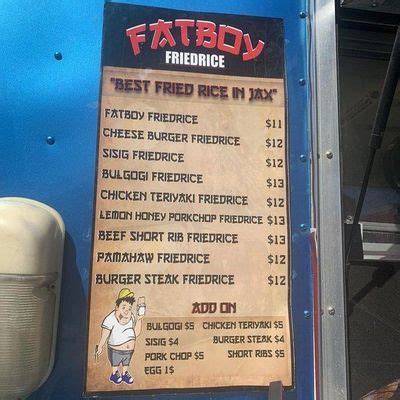 Fatboy Fried Rice Menu . Web online menu of fatboy fried rice, jacksonville, fl home jacksonville jacksonville jacksonville fatboy fried rice view menu read reviews write review. They claim to have the best fried rice.