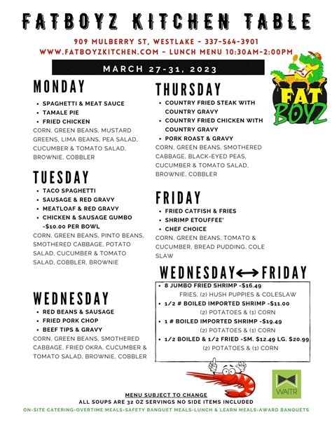 Fatboyz Kitchen Table Menu. We do catering for safety meals,. Playlist enewsletter subscribe for exclusive details on events, itineraries, deals and more ways to play it up.