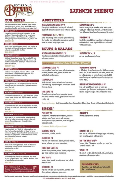 Feather Falls Brewery Menu. Feather falls brewing company has updated their hours, takeout & delivery options. On occasions prior to covid, they had live shows.