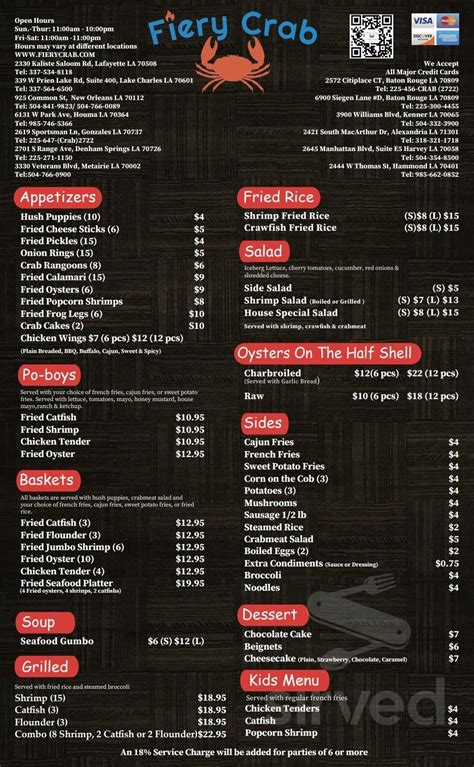 2619 s sportsman ln gonzales la 70737. Seafood never tasted so good! we specialize in low country boil using family recipes. 1,101 likes · 36 talking about this · 291 were here. Business open hours and service may differ. 3330 veterans blvd metairie, la 70002. At fiery crab we prefer not to give any plates or cutleries because you eat right from a seafood bag from the table and with your hands. 2619 s sportsman ln gonzales la 70737. Our story locations menu celebrations online order. Served with your choice of french fries, cajun fries, or sweet potato fries. We offer a wide range of seafood cooked to perfection that will make your taste buds tingle with joy. Web fiery crab menu prices verified prices pricelisto is not associated with fiery crab top rated items at fiery crab crawfish fried rice $8.00 snow crab legs (lb.) $26.00 fried oysters (6) $8.00 king crab legs (lb.) $35.00 jump to section show you are viewing fiery crab prices confirmed by pricelisto at one or more locations in united states