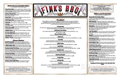 Menu Fink's BBQ and Cheesesteak Roadhouse