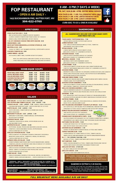 Restaurantguru.com takes no responsibility for availability of the fop menu on the website. Web menu added by users september 29, 2022. Tasty meals at low prices are provided here. Proceed to the restaurant's website. Web family restaurant located in nutter fort west virginia. All our menu items breakfast, lunch and dinner are available all day long. You may explore the information about the menu and check prices for fop by following the link posted above. Fop | nutter fort wv. On the street of buckhannon pike and street number is 1422. Enjoyable service is a strong point that plays a great role for the success of fop. We have something for everyone,.
