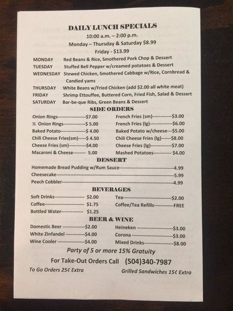 By using this site you agree to zomato's use of cookies to give you a personalised experience. By using this site you agree to zomato's use of cookies to give you a personalised experience. Web frazier's connection restaurant, marrero, la. Web menu added by users december 07, 2021 menu added by the restaurant owner january 23, 2021 the restaurant information including the frazier's connection menu items and prices may have been modified since the last website update. French, italian, oil & vinegar,. Bowl $5.75 cup $3.75 homemade dressings: Web frazier's connection new orleans, marrero; Web menu popular dishes fried chicken 3 photos 20 reviews grilled roast beefs 1 photo 5 reviews bbq beef sandwich 2 photos 2 reviews red beans and rice 2 photos 2 reviews seafood gumbo 1 photo 1 review location & hours 2841 barataria blvd marrero, la 70072 get directions edit business info amenities and more estimated health score 98 out of 100 Tuskies’ gift card order form. Web salads & soups cream of crab & shrimp a must try! Diner, southern, soul food, sandwiches neighborhood: