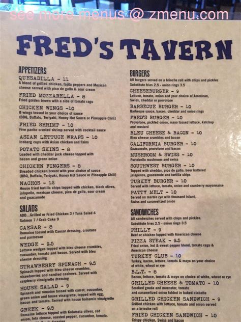 Check out our location and hours, and latest menu with photos and reviews. Web full menu location & hours 4425 stewart ave las vegas, nv 89110 sunrise get directions edit business info amenities and more health score a powered by hazel analytics no reservations accepts credit cards moderate noise 7 more attributes ask the community ask a question yelp users haven’t asked any questions yet about fred's tavern. Now that you know what you will be paying to eat at fred's tavern, here is the full menu of. Now let’s check out fred's tavern's menu! Web ** fred's rivertown alehouse ** woo hoo !!! Web fred's tavern menu categories. We begin with the pizza, sauce and cheese. Fred's serves flatbread pizza for the gourmet in you. Fred's tavern, stone harbor, new jersey. Restaurant serves lunch & dinner from 11am until 10pm daily liquor store is open:sunday through.