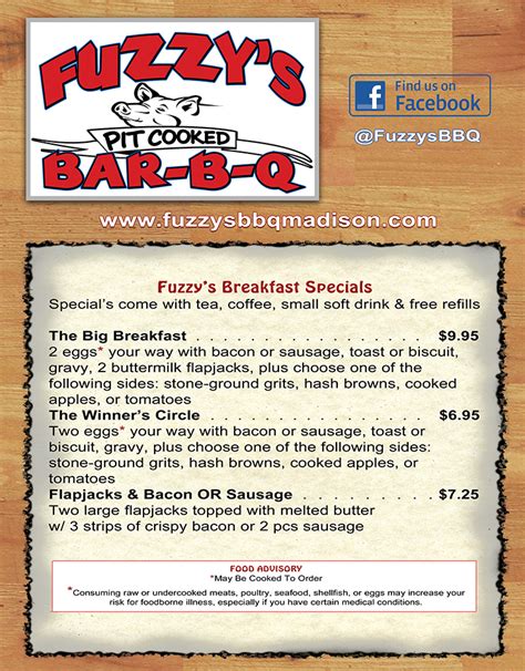 Menu for fuzzy's sports pub & grill provided by allmenus.com. Web click on the thumbnail images of the menus below to see larger views. Folded breakfast $8.29 eggs, your choice of meat, cheese and hash browns stuffed into our famous hand rolled bread. Includes 10 breakfast tacos (choice of egg & cheese; Ad browse nearby restaurants—or search by name or cuisine. Web dried fruit & nut mix $0.75. Fuzzy's sports pub & grill | waukesha wi. Ad support your local restaurants by having your meals delivered right to your door. It focuses on authentic mexican flavors with an american twist. To close them, scroll down to the bottom of the menu and hit close.