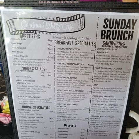 After a long working day, you can taste great coffee. It is a great family restaurant, newly renovated with comfy stylish seating optons. Web gardner willz cafe menu and delivery in hampton roads too far to deliver gardner willz cafe american • more info 5811 west norfolk road, portsmouth, va 23703 tap for hours, info, and more enter your address above to see fees, and delivery + pickup estimates. Good waffles are often ordered by visitors here. It offers brunch and dinner. Web gardner willz cafe menu. 5811 west norfolk road, portsmouth, va 23703 • more. West norfolk shopping center, 5811 w norfolk rd, portsmouth, va 23703. $$ • american, coffee, tea hours: Menu added by the restaurant ownerjune 19, 2022.