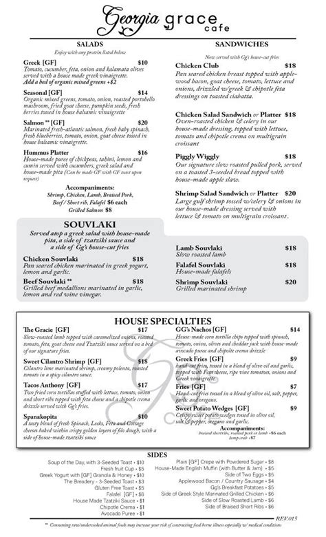 Georgia Grace Cafe Menu. This quaint restaurant, located at the top of. Our wine dinners allow us the creativity to.