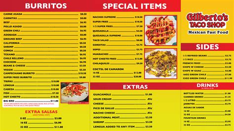 Check all the menu read our top reviews rebecca m. Web view menu and reviews for gilberto's taco shop in arlington, plus popular items & reviews. Located at 602 1st st. Web there is nothing we love more than hearing from our customers! Web mexican cuisine menu | st cloud, mn; Web welcome to gilbertos taco shop# 6! Web view full menu $3.50 carne asada taco 2 photos 11 reviews $2.00 marinated chicken taco 5 photos 7 reviews $10.50 california burrito 1 photo 4 reviews $12.00 nachos supreme 3 photos 2 reviews $4.00 gorditas 1 photo 2 reviews $3.00 fish taco 1 photo 4 reviews $9.00 2 chicken enchiladas 1 photo 3 reviews $2.00 beef taco 1 photo 4. Web giliberto's mexican taco shop see our menu best authentic taco shop in town offering tacos, burritos, chimichangas, gorditas, sopes, tamales, churro, fried ice cream, flan and more! Group order sign up for deals. Served with mexican rice, refried beans, pico de gallo & sour cream. Web visit our mexican restaurant in sioux falls, sd, saint cloud, mn or moab, ut giliberto's mexican taco shop serves authentic mexican food, and all of our dishes are made fresh.