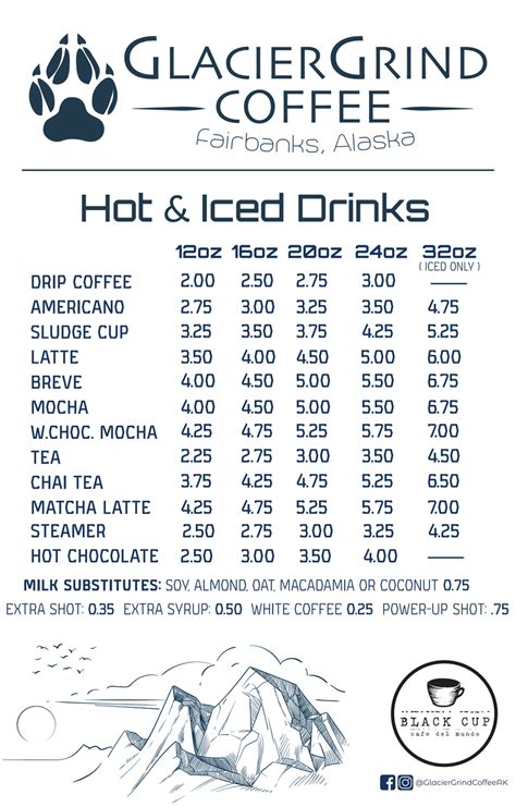 For the most accurate information, please contact the restaurant. Glacier grind coffee is a premiere coffee hut that serves the finest coffee in town. Menu items and prices are subject to change without prior notice. Pick your base and favorite flavors, or let our barista's surprise you with a secret mix! Although we offer a wide variety of hot and iced drinks, we also provide savory and sweet food options. Web addison coffee roasters mexican vanilla coffee, sold by the pound. So whether you're stopping for your morning. $ • coffee shops, tea, juice bar, smoothies. Web our glacier water will brighten every day with a whole lot of flavor and caffeination! We’re… 1255 airport way, fairbanks, ak 99701.