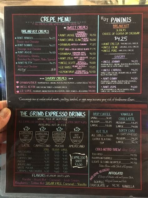 Grind N Crepe Menu . We work hard everyday to give our customers savory crepes. Grind n crepe will offer you delicious bourbon.