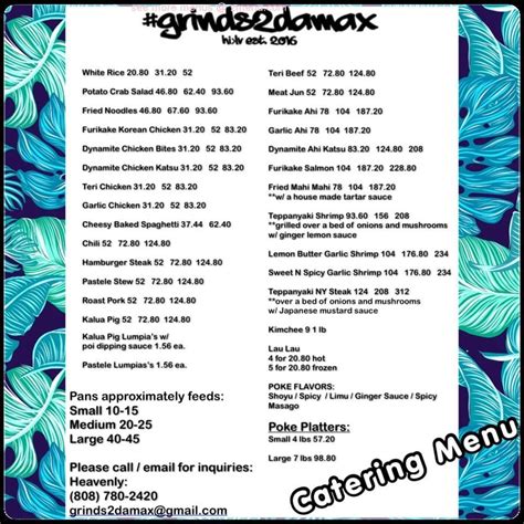 Grinds 2 Da Max Menu. Web now that you know what you will be paying to eat at grinds 2 da max llc, here is the full menu of food options to choose from! Established in hi, thriving in lv.