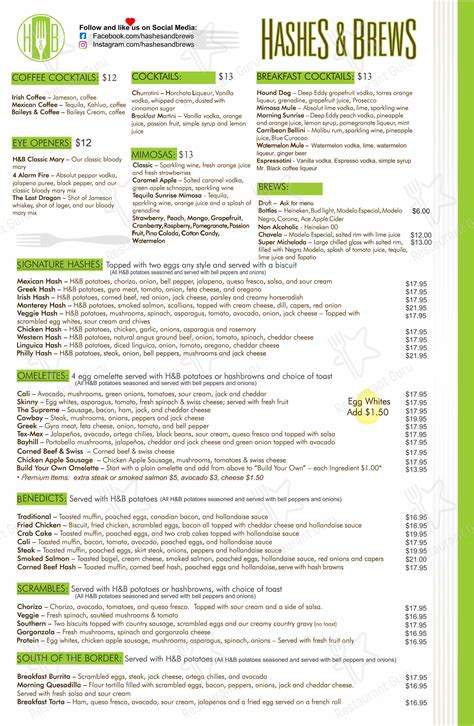 Web hashes & brews basic breakfasts 2 eggs any style $11.70 served with a choice of side and toast. April 10, 2018 red velvet. Place orders online or on your mobile phone. Breakfast salads fried chicken salad Is the menu for hashes & brews available online? 1:12 am summer madness 7:31 am skirt steak salad 7:27 am news la la paloma (mimosa) august 3, 2022leave a comment read more fried chicken waffles! You are free to download the hashes & brews menu files. Web menu added by users june 29, 2022 the restaurant information including the hashes & brews menu items and prices may have been modified since the last website update. Information shown may not reflect recent changes. 550 likes · 11 talking about this · 3,081 were here.
