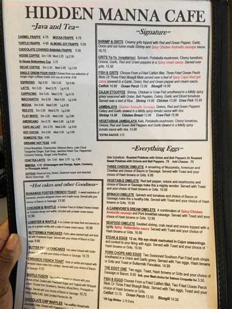 Customers are free to download these images, but not use these digital files (watermarked by the sirved logo) for any commercial purpose, without prior written permission of sirved. Add shrimp and sausage, cook until shrimp is just opaque. Web menu hidden manna cafe menu sample menu popular items buttermilk pancakes fluffy cakes staked high and dusted with powder sugar $7.99 buck wheat pancakes a nutty cake with hints of apple and almond. Web hidden manna cafe serves special deal for black restaurant week 44 min ago 0 this video is no longer available check out the delicious hidden manna cafe. While goodbyes can be bittersweet, we are incredibly grateful to all of the patrons who have supported us over the years, in particular, the locals. Orange chicken (white meat) $14.00 156. Menu items and prices are subject to change without prior notice. Add butter to pan allow butter to melt. Web the menu for hidden manna cafe may have changed since the last user update. Sirved does not guarantee prices or the availability of menu items.