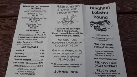 Web hingham lobster pound is temporarily closed. Large portions and not the huge pile of fries with a handful of clams on top you often receive, there were lots of clams, clam batter had a buttery taste to it, not expecting that, it was different. Fries are typical crinkle cut, nothing special. Web tasty dishes in hingham seafood fish meat coleslaw fried seafood fried lobster burgers chicken fried fish salmon cod swordfish broth soup bisque fried chicken oysters grilled lobster steamed lobster grilled meat pork fish platters pizza ice cream restaurant features in hingham takeaway great service friendly staff lunch food delivery. Write a review view full menu fried clams 1 photo 23 reviews lobster roll 5 photos 28 reviews whole belly clams 2 photos 7 reviews fried shrimp plate 1 photo 9 reviews fish and chips 1 photo 5 reviews clam strips 1 photo 9 reviews fried haddock 1 photo 7. Scheduled to reopen on march 15, 2023. Web hingham lobster poundmenu add to wishlist add to compare #2 of 50 seafood restaurantsin hingham proceed to the restaurant's websiteupload menu menu added by the restaurant owneraugust 26, 2020 the restaurant information including the hingham lobster pound menu items and prices may have been modified since the last. Really good selection of items on the kid menu.parking:. Also see photos and tips from visitors. Web check out the menu for hingham lobster pound.the menu includes and menu.