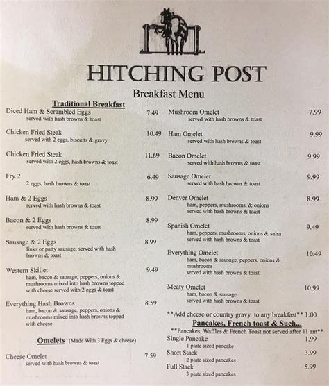Hitching Post Restaurant & Saloon Home Green River, Wyoming Menu