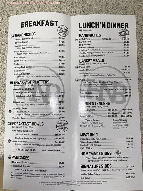 Chicken, steak or sausage links 3 meat platter* 1 sausage patty, 2 strips of bacon and 1 slice of ham no meat platter low carb platter* You will find that the menu is divided into the following categories: Web great place with pretty good food. Served with 2 eggs + grits + toast or biscuit* choose your meat sausage patties, bacon or ham; Drink + hash rounds or grits sausage patty biscuit chicken biscuit sunrise biscuit * ham,. The eggs, biscuits, and bacon were very good and the sweet blueberry biscuit was amazing. Served with 2 eggs + grits + toast or biscuit* choose your meat sausage patties, bacon or ham; Web now let’s check out hog n bones menu! Chicken, steak or sausage links 3 meat platter* 1 sausage patty, 2 strips of bacon and 1 slice of ham no meat platter low carb platter* I'd love to come back sometime and try their barbecue! The grits weren't bad but putting a slice of processed cheese on top of the grits and calling them cheese grits is off putting to me.