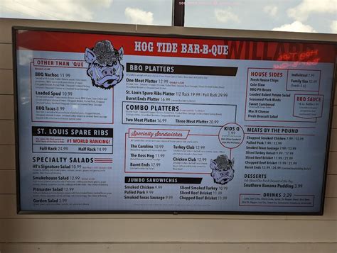 Hog Tide Bar-B-Que Menu. Sirved does not guarantee prices or the availability of menu items. 1,257 likes · 5 talking about this.