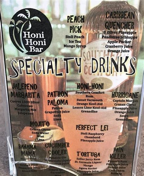 Honi Honi Bar Menu . The one for endless fun at deep creek lake, md. Please note table service is not available, but drinks can be purchased from bartenders at the.