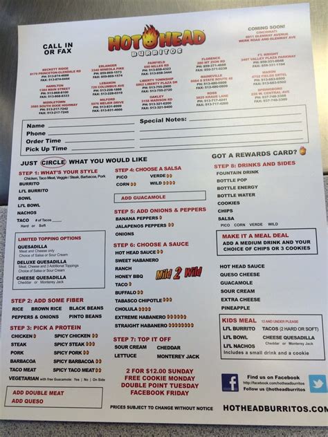Hot Head Burrito Menu . Save your time and money today. Order your usual, and we'll deliver to your door.