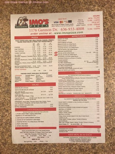Customers are free to download these. Web the menu for imo's pizza may have changed since the last user update. Learn more about offering online ordering to your diners. Chef salad with lettuce, provel. Sirved does not guarantee prices or the availability of menu items. Web this is the first time i've eaten at a imo's pizza and i have to say my mind and taste buds were blown away!!! Web imo's house salad with lettuce and provel cheese. View the menu, check prices, find on the map, see photos and ratings. If customization is your style,. Spicy jalapeño ranch salad romaine blend, grape. Customers are free to download these.