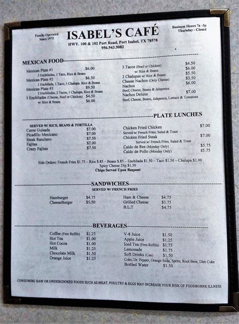 Order online and track your order live. Web reviews for isabel's cafe january 2023 tortillas & beans,were delicious.large flour torllas are about 12 wide.had a flour tortilla with butter while waiting for food.brought back. Web get delivery or takeout from isabel's vintage cafe at 102 west main street in ripon. No delivery fee on your first order! Web find many great new & used options and get the best deals for houston, texas: Consuming raw or undercooked meats, poultry, seafood, shellfish or eggs may increase your risk of foodborne illness. Lettuce, tomatoes, garlic mayo on a kaiser roll grilled yellow fin tuna & bacon. Web isabel's cafe brownsville, port isabel; You are free to download the. Web the restaurant information including the isabel's cafe menu items and prices may have been modified since the last website update.