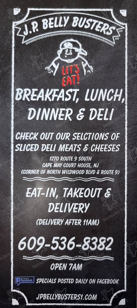 These are served in generous portions and served from the brunch hours until. Web 2.1 miles away from jp belly busters your local rio grande subway® restaurant, located at 3159 route 9 south brings new bold flavors along with old favorites to satisfied guests. Jp belly busters @jpbellybusters · pizza place call now more home menu reviews photos follow menu business info sandwiches · pizza · burgers. Web people just love our tasty and tender beef brisket, ribs, pork loin, pulled pork, ham, links, turkey breast, chicken, sides and fixins. Ancho caesar grilled chicken lettuce wraps $9.79. Belly busters menu items and prices may have been modified since. I got cheeseburger and cheese fries. Web log in forgot account? Web baked bavarian pretzel pieces topped with mozzarella, pepperoni and parmesan with a rustic marinara dipping sauce. Belly busters restaurant villas location • j.p.