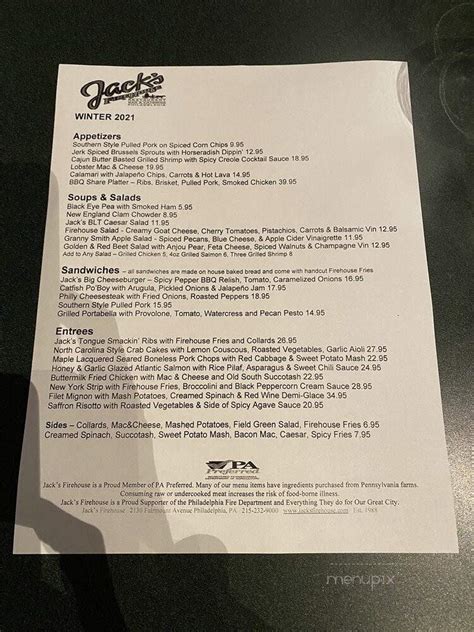 Jack's Firehouse Philadelphia, Pennsylvania Menu, Prices