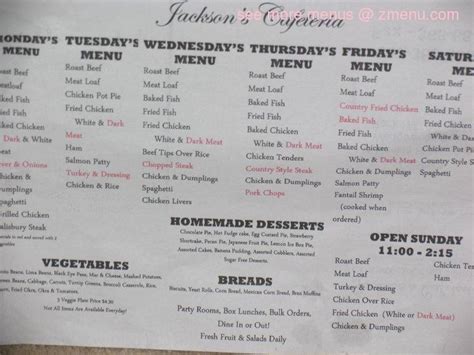 Jackson's Cafeteria Menu With Prices (Updated November 2022)