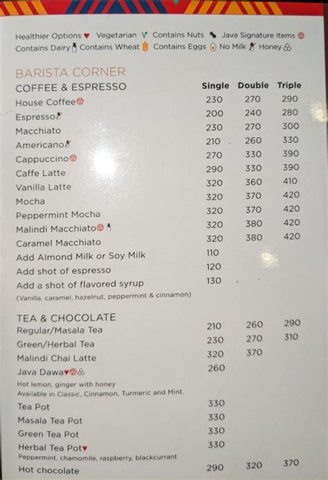 Java House Menu Classic Drinks, Pour Over Coffees & Teas Java House