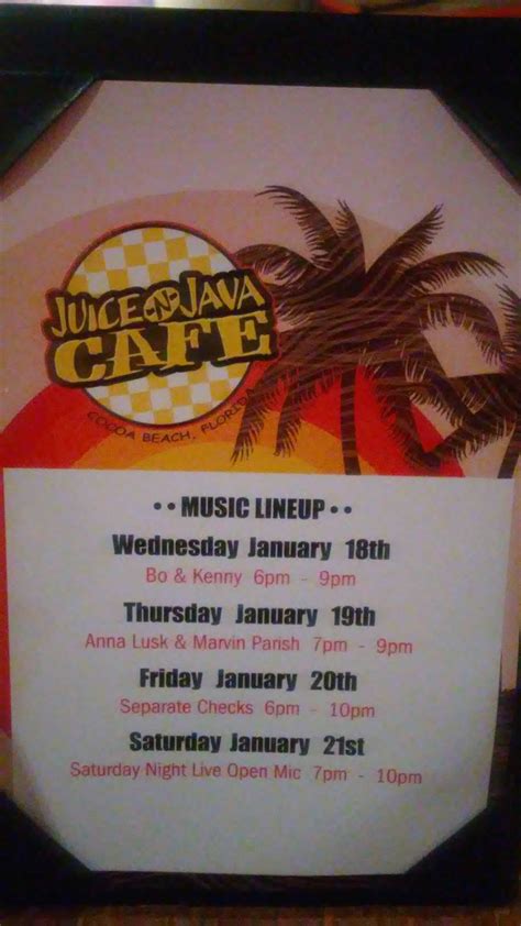 Online Menu of Juice N Java Cafe Restaurant, Cocoa Beach, Florida
