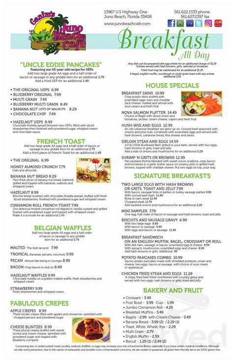 Sign up this form is protected by recaptcha and the. Web juno beach cafe downtown juno beach landmark since 1998 home of uncle eddie pancakes a 65 year old recipe all day breakfast everyday! $$ • american, breakfast hours: Web menu popular dishes view full menu $13.99 traditional eggs benedict 5 photos 17 reviews $10.99 jumbo breakfast sandwich breakfast 3 photos 4 reviews $5.99 hash brown casserole a la carte 2 photos 4 reviews $10.79 honey oats and almond crunch french toast 2 photos 4 reviews $13.49 chicken and waffle 3 photos 3 reviews $13.99 Dinner menu gift card order now. Breakfast menu lunch menu dinner menu gift card more. Satisfy let's stay connected certificate of excellence hurricane cafe join us for happy hour every day from 3pm to 6pm Juno beach, fl 33408 map & directions add to favorites × {location name} has been added to your favorites. Web home of uncle eddie pancakes a 65 year old recipe all day breakfast everyday! Full cocktail bar open to 10pm.