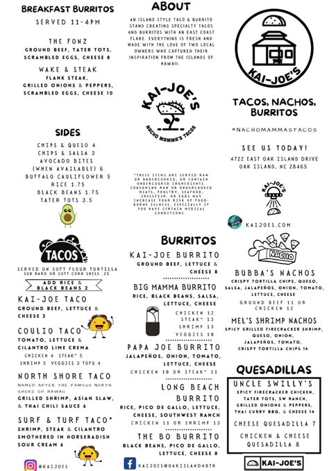 Kai Joe's Menu . Web kai joe’s oak island menu. Web the menu of mexican cuisine under the direction of the great chef is gorgeous here.