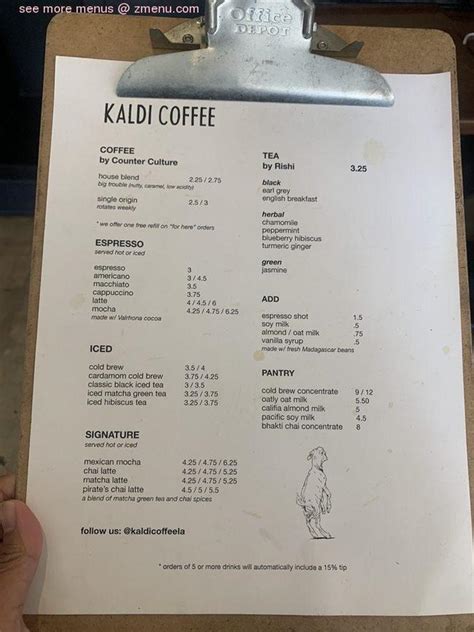 Kaldi's Coffee Menu . Dark chocolate frozen coffee $6.50. Web kaldi's coffee menu breadcrumb home espresso bar espresso (8oz, 12oz, 16oz) americano (8oz, 12oz, 16oz, iced) latte (8oz, 12oz, 16oz, iced) cappuccino (8oz, 12oz,.