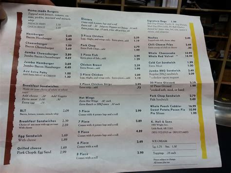 Menu at K. Hall & Sons, Little Rock
