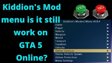 Kiddions Mod Menu Not Working. I downloaded the mod, did the whole procedure of turning it on after being inside gta but it doesn't work for me, i can open the mod, browse the options but i can't apply them to my game.someone can help me??? It provides an easy way to spawn vehicles and is simple to access and toggle.