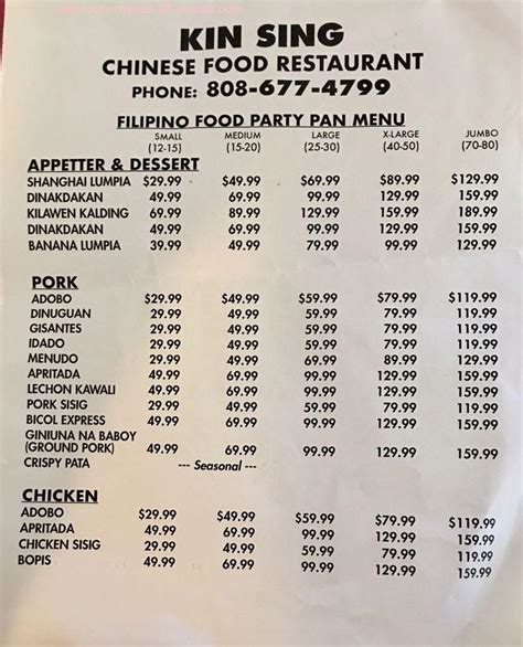 Kin Sing Menu Waipahu . See unbiased reviews of kin sing chinese fast food, rated 4 of 5 on tripadvisor and ranked #98 of 146 restaurants in waipahu. Restaurant menu, reviews and prices