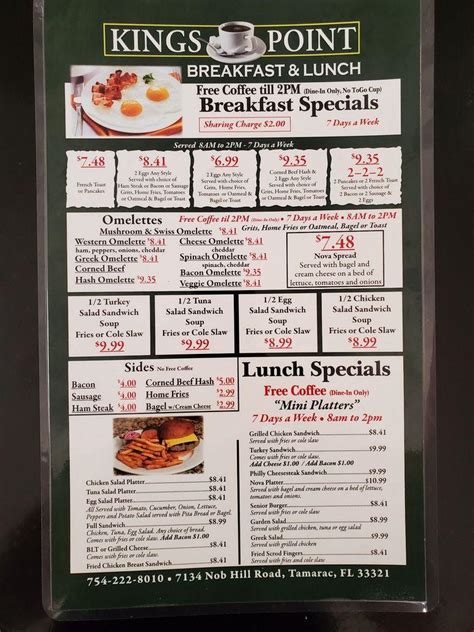 Web use your uber account to order delivery from kings point diner in miami. Web the feature of this restaurant is serving good soup, bacon and salads. 0.17 miles krispy kreme doughnuts ($) donuts, desserts Browse the menu, view popular items, and track your order. Web view menù of kings point diner, tamarac: This place is famous for its great service and friendly staff, that is always ready to help you. Most likely, you'll return to kings point diner later to order great coffee or delicious tea. 0.05 miles blazing grill and pizza ($) italian, pizza, wraps distance: Here you will be offered tasty pancakes and perfectly cooked french toasts. Web best menus of tamarac best menus of fort lauderdale diners in tamarac nearby restaurants mingwah chinese restaurant ($) chinese distance:
