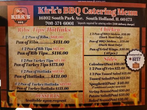 Kirk's BBQ in South Holland Restaurant menu and reviews