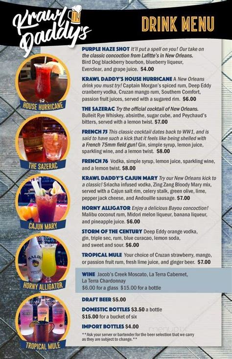Get your meal started with delicious beer. Web krawl daddy's menu with prices 2022 get krawl daddy's menu and prices, best deals, restaurants locations and more. They brought out a water dish for them. Web view the online menu of krawl daddys and other restaurants in saint charles, missouri. 221 n main st, saint charles, mo 63301. There was an error with. They have an outdoor patio that is dog friendly. Web the restaurant information including the krawl daddy's menu items and prices may have been modified since the last website update. Web krawl daddy's serves cajun and creole cuisines. We offer american and cajun. For starters you can enjoy a variety of favorites.